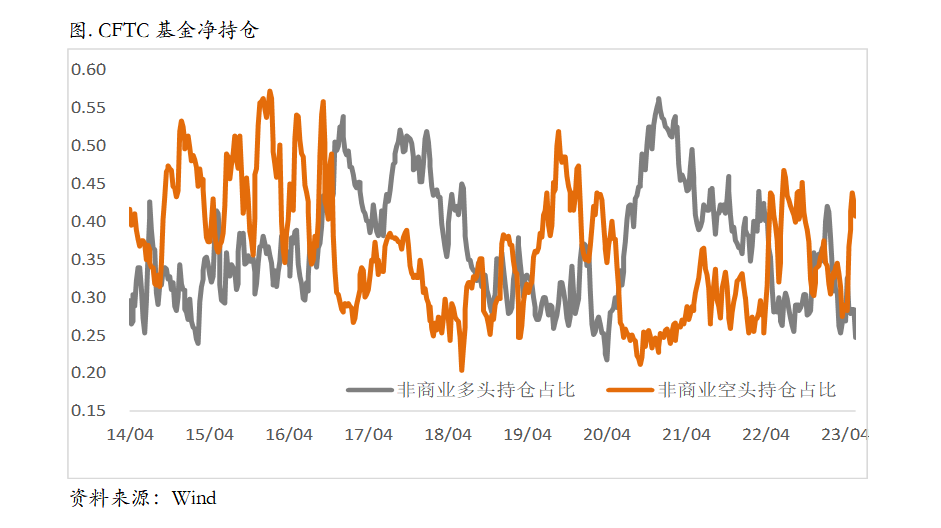 From the perspective of CFTC positions, the proportion of non-commercial long positions continued to decline last week, while the proportion of short positions increased more obviously. As far as we know, there are indeed some overseas funds that are closing their long positions, and the proportion of long positions may further decline.