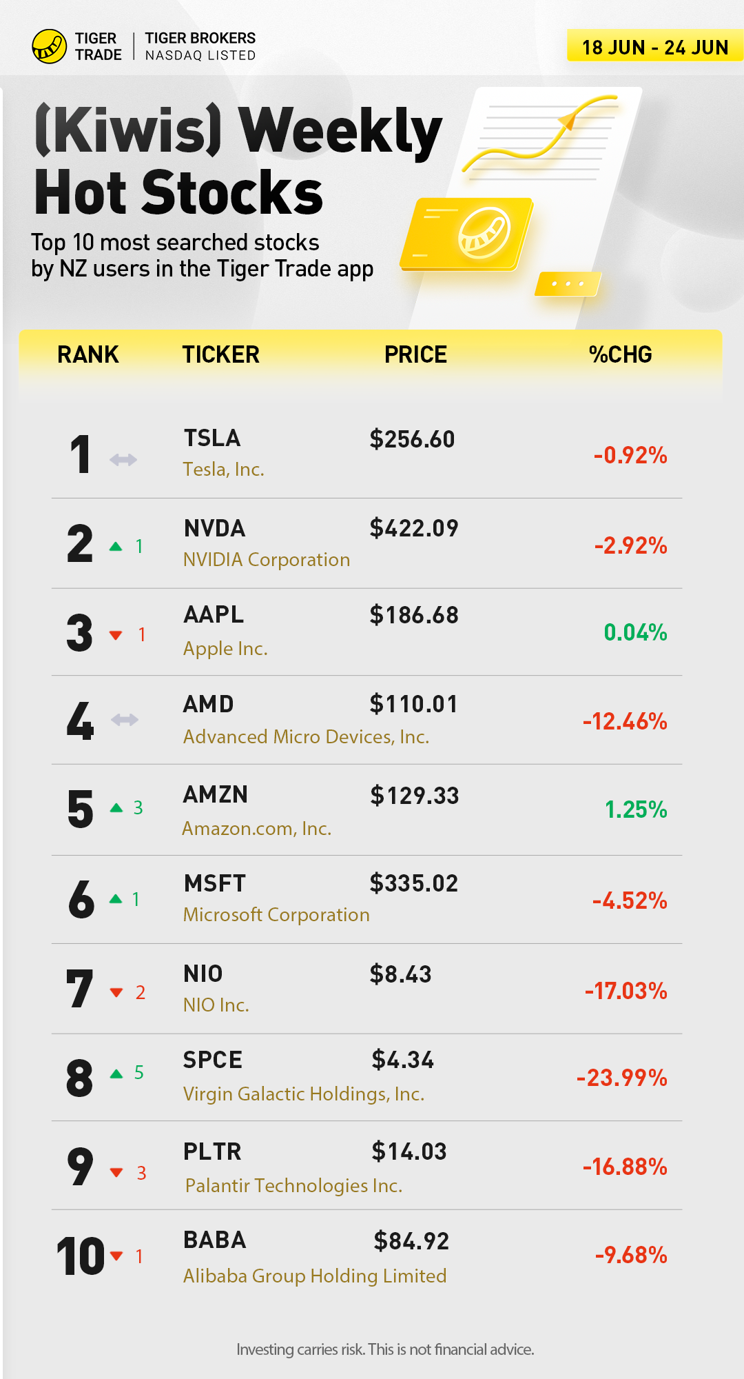 Here I will post the 10 most searched stocks by New Zealand users in the Tiger Trade App every week. Don't miss my updates!!!