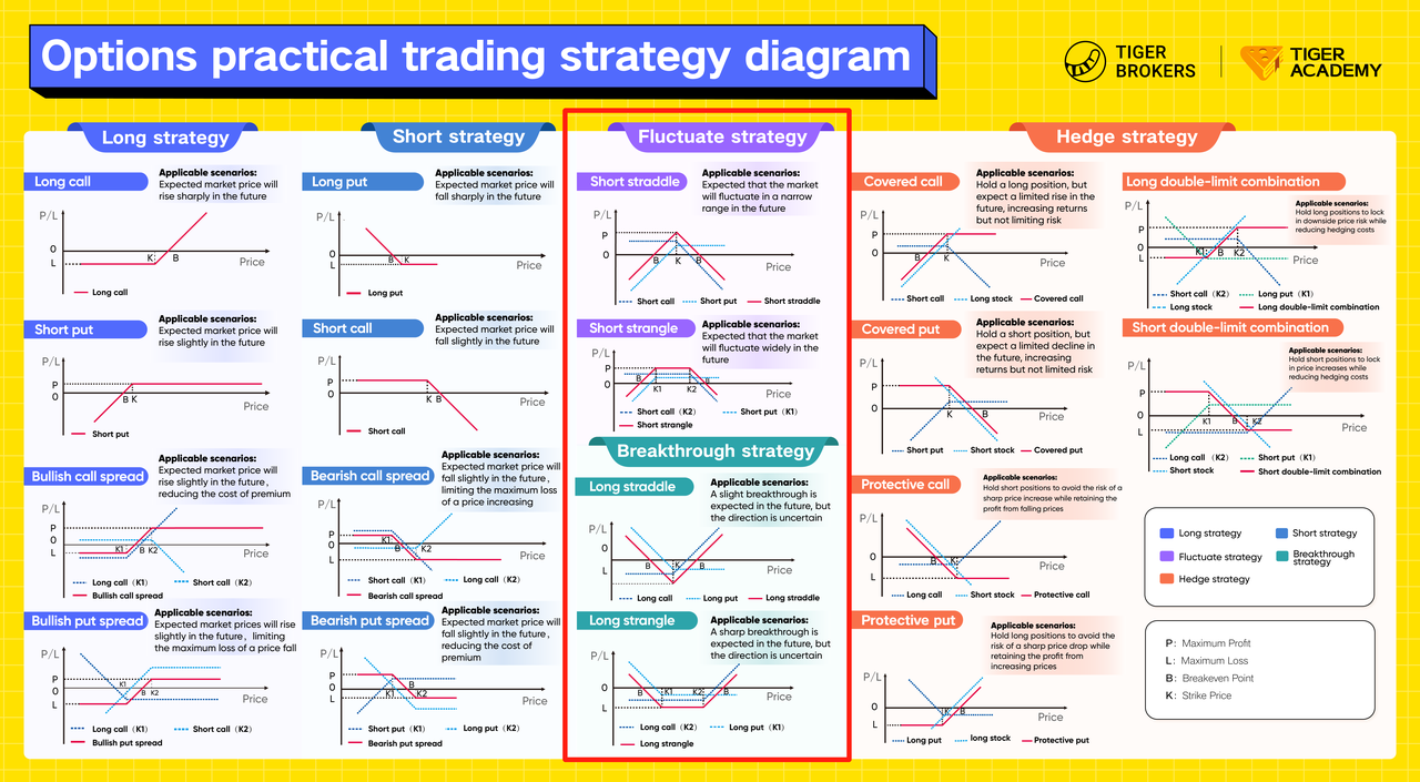 Long strangle | Sharp breakthrough expectation | Lower premium cost | Lower return |