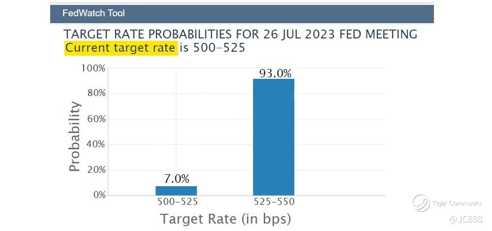 Looking at the latest CME FedWatch, probability of the Fed raising interest rate by another 0.25% later this month has risen to 95% (see above).