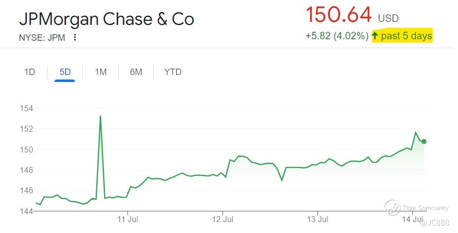 BAC jumped 4.5% on good earnings; JPM with 4%jump would be at $156😀