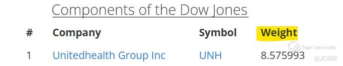 This explains why it is ranked #1 in the Dow Jones index with the highest weight of 8.575993.