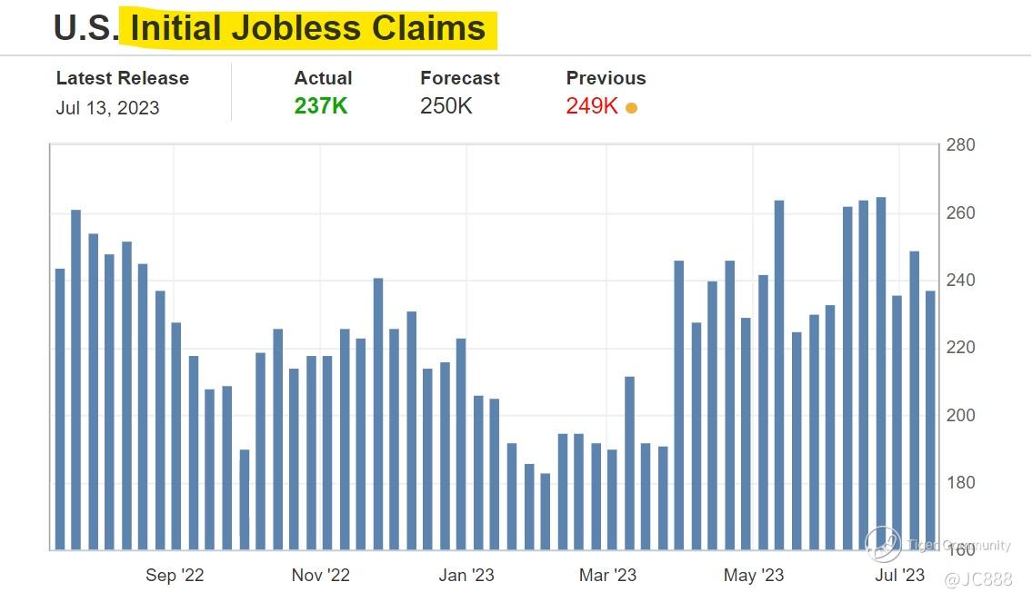 Unemployment claims fell to 237,000 versus 249,000 (previous week) and against Wall Street expected 250,000.