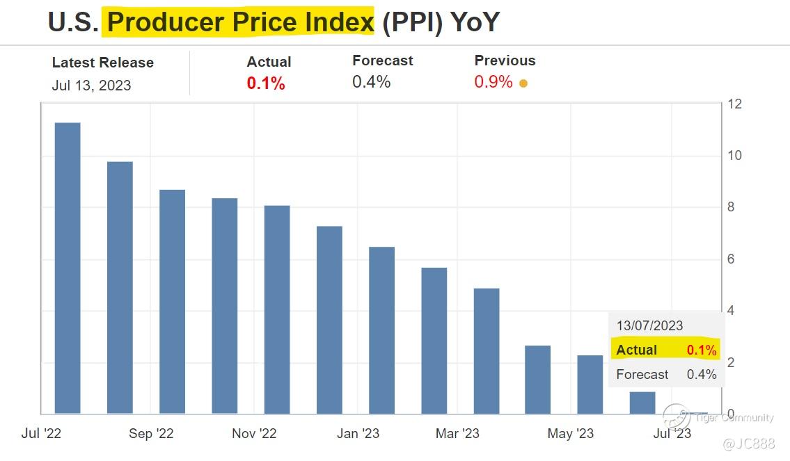US June 2023’s PPI came in at 0.1%, way below the expected forecast 0.4%.