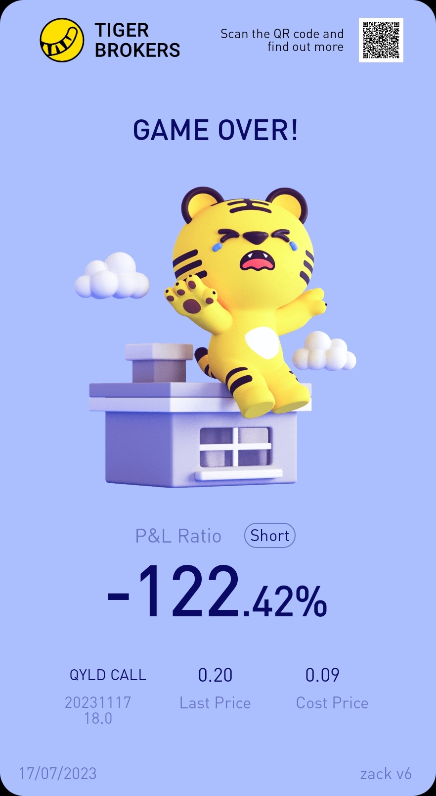 $QYLD 20231117 18.0 CALL$ why am I still at a loss?? Qyld is now trading more than my strike price. What is going in with tigerbroker?