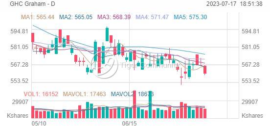 $GHC is going to ex_dividend on July 18th with $1.65 for quarterly dividend. It has see several quarters earnings increases. On Early May, $GHC reported net income attributable to common shares of $52.3 million ( $10.88 per share) for the first quarter of 2023, compared to $95.6 million ( $19.45 per share) for the first quarter of 2022. GHC now price at $560 with a -7.6% YTD in 2023.