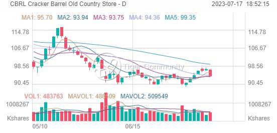 $CBRL now price at 94.05 with -0.73% YTD 2023. In third-quarter fiscal 2023(ended on 28th April), the company reported adjusted earnings per share (EPS) of $1.21, missing the Zacks Consensus Estimate of $1.33. In the prior-year quarter, the company reported an adjusted EPS of $1.29. For fourth-quarter fiscal 2023, the company expects revenues to grow in the range of 1-3% year over year.