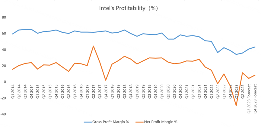 In addition to the improvement in revenue, Intel's profitability has also improved. The gross margin for the second quarter was 35.8%, better than the management's guidance of 33.2%.