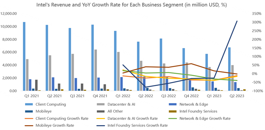 The Network & Edge business saw a larger decline in the second quarter, but due to its smaller revenue scale, it had little impact on Intel. A similar deterioration was observed in the autonomous driving Mobileye business, but the management expects business growth to recover in the second half of the year.