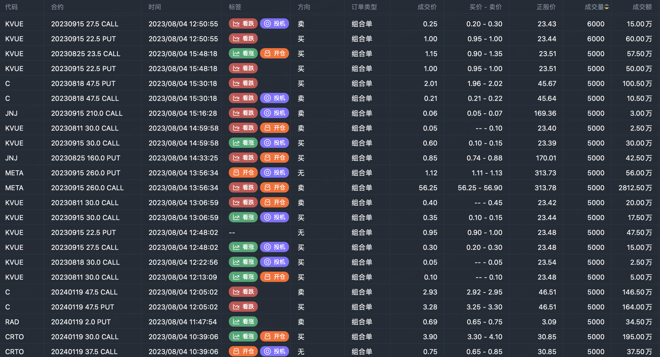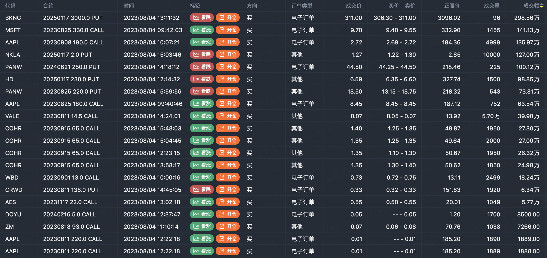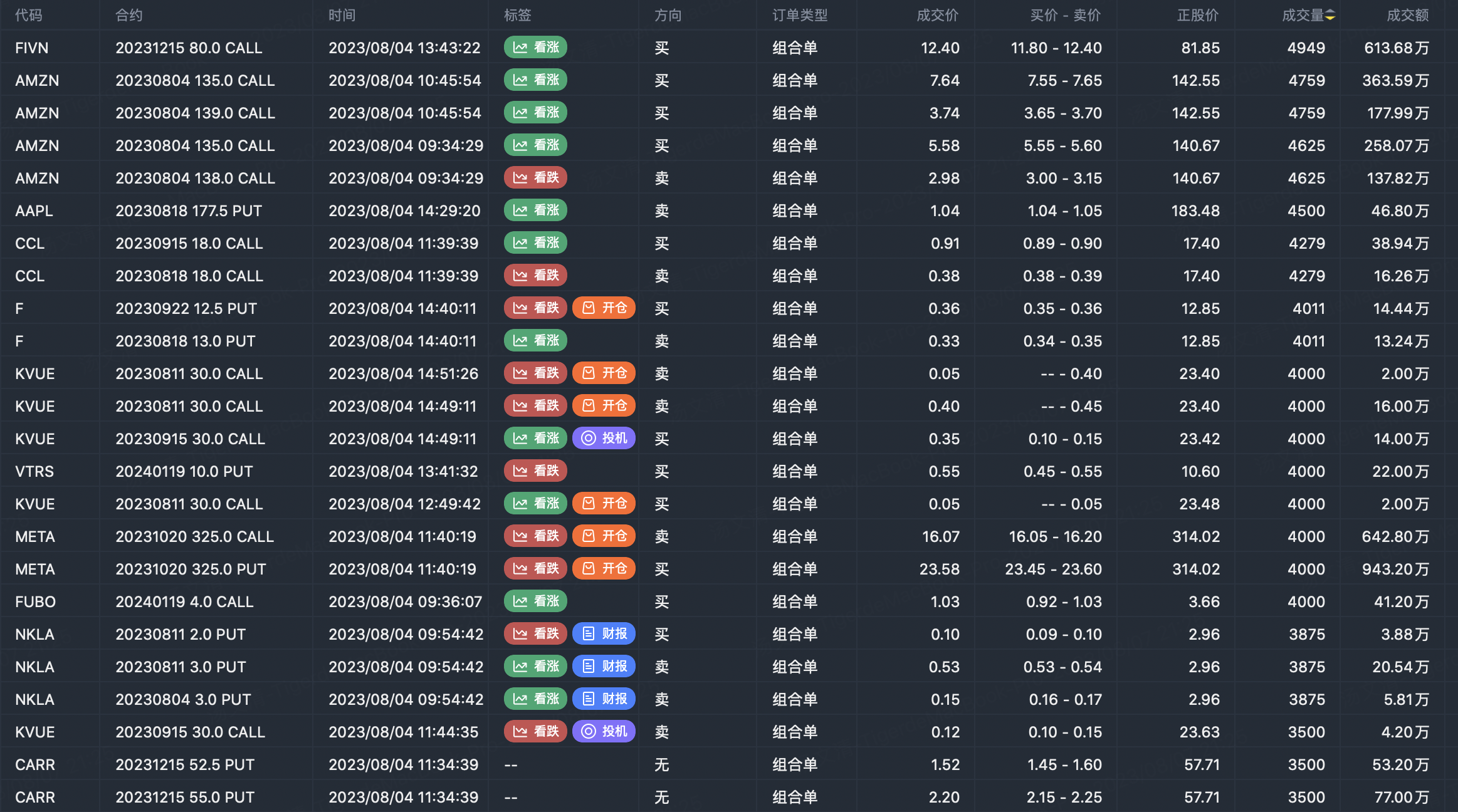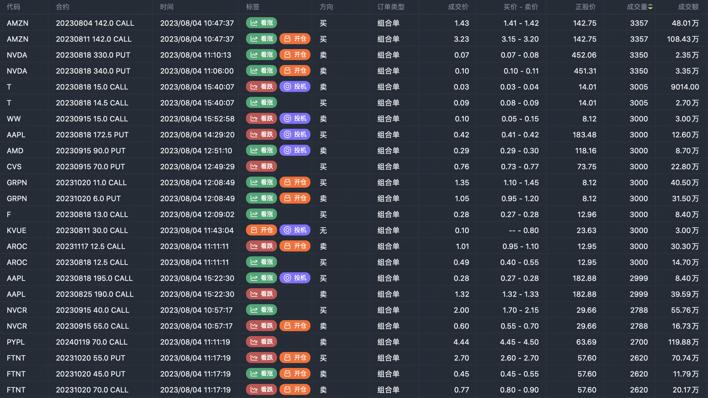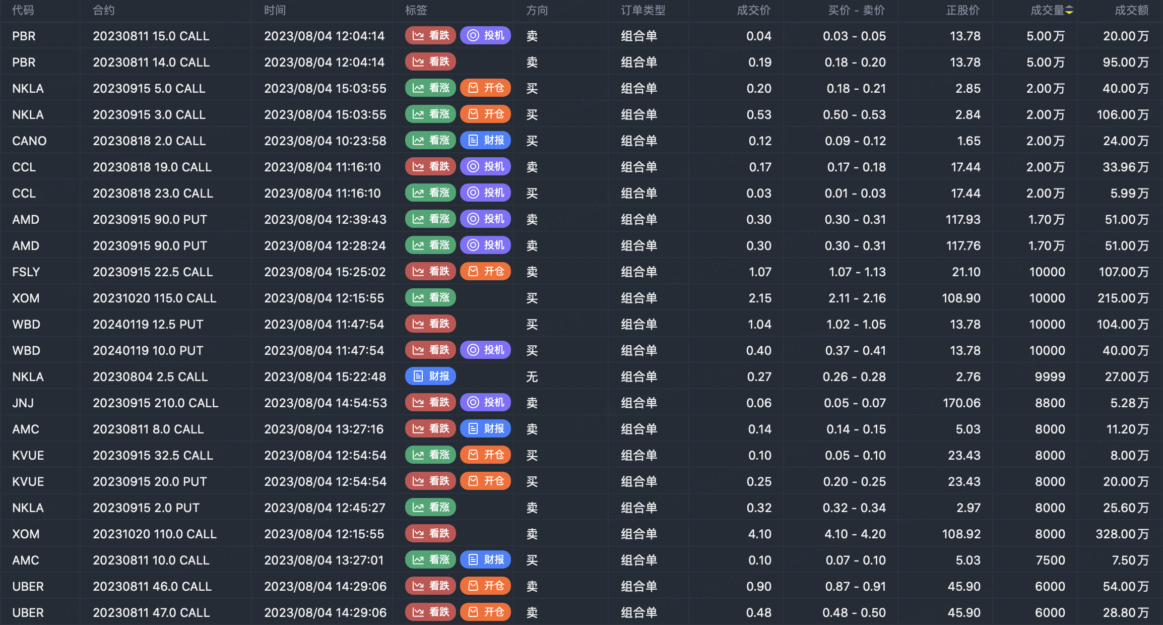 Note: This image data is from Tiger PC. This screening is a significant portfolio of options contracts in the market. Portfolio opening includes a variety of underlying trends, requiring traders to further master the basic knowledge of options for analysis and judgment.
