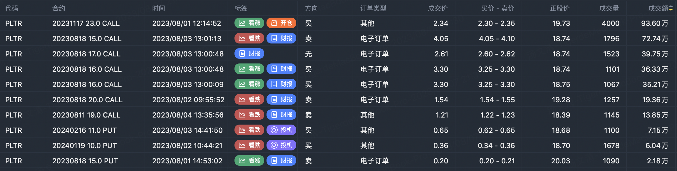 Option transaction of PLTR, open position is mainly called option large order: