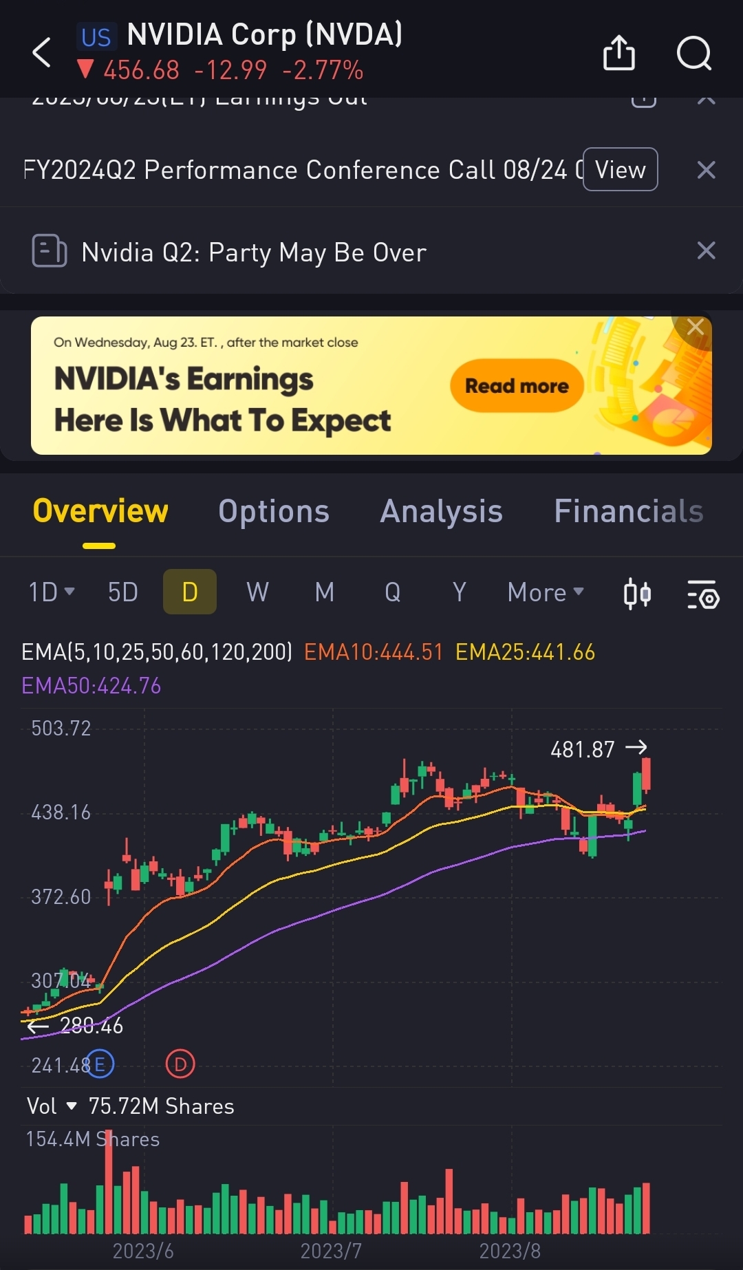 We cannot deny that the destiny of AI stocks are mainly depend on NVDA incoming earnings release and prospect. We got a big expectation from everyone since previous quarter forecast. Let's see how the things go. Will it be another surprise for us? Technically, the chart shows strong rebound for this week, yesterday candle might be a peak signal, open high and close low, but then the red candle still within the half body of the previous green candle, which is not too bad. I believe $NVIDIA Corp(NVDA)$