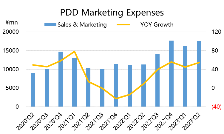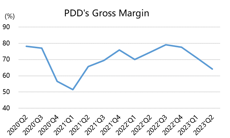 Marketing expenditures continue to rise, with a decrease in gross profit margin. This indicates that Temu, the overseas growth engine, has begun to gain traction, but it also comes with increased marketing costs. This might impact profit margins in the coming quarters.