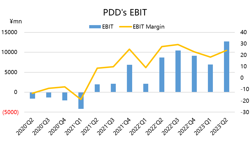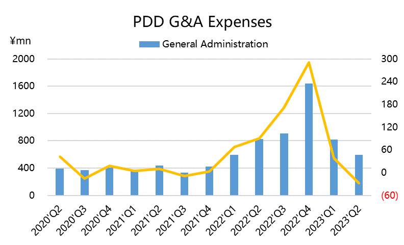 Simultaneously, we can observe the recovery of the advertising sector at a 50% growth rate, and the online competition is gradually intensifying, making it more challenging for merchants to generate profits on Pinduoduo's platform. However, commission income has doubled, which could possibly be an unexpected outcome of the overseas expansion.