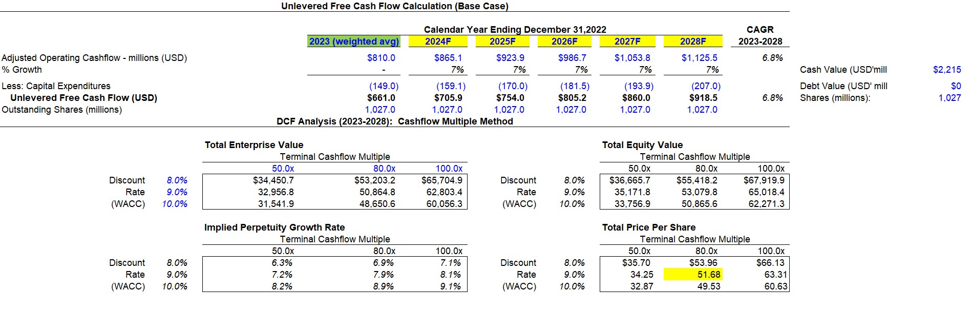 For this exercise, I will put the three-case multiple scenarios to be at 50x, 80x, and 100x.
