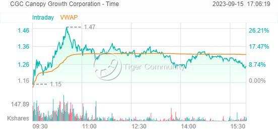 2. Cannabis company $Canopy Growth Corporation(CGC)$+ 7.76%: ends ties with BioSteel due to financial impact
