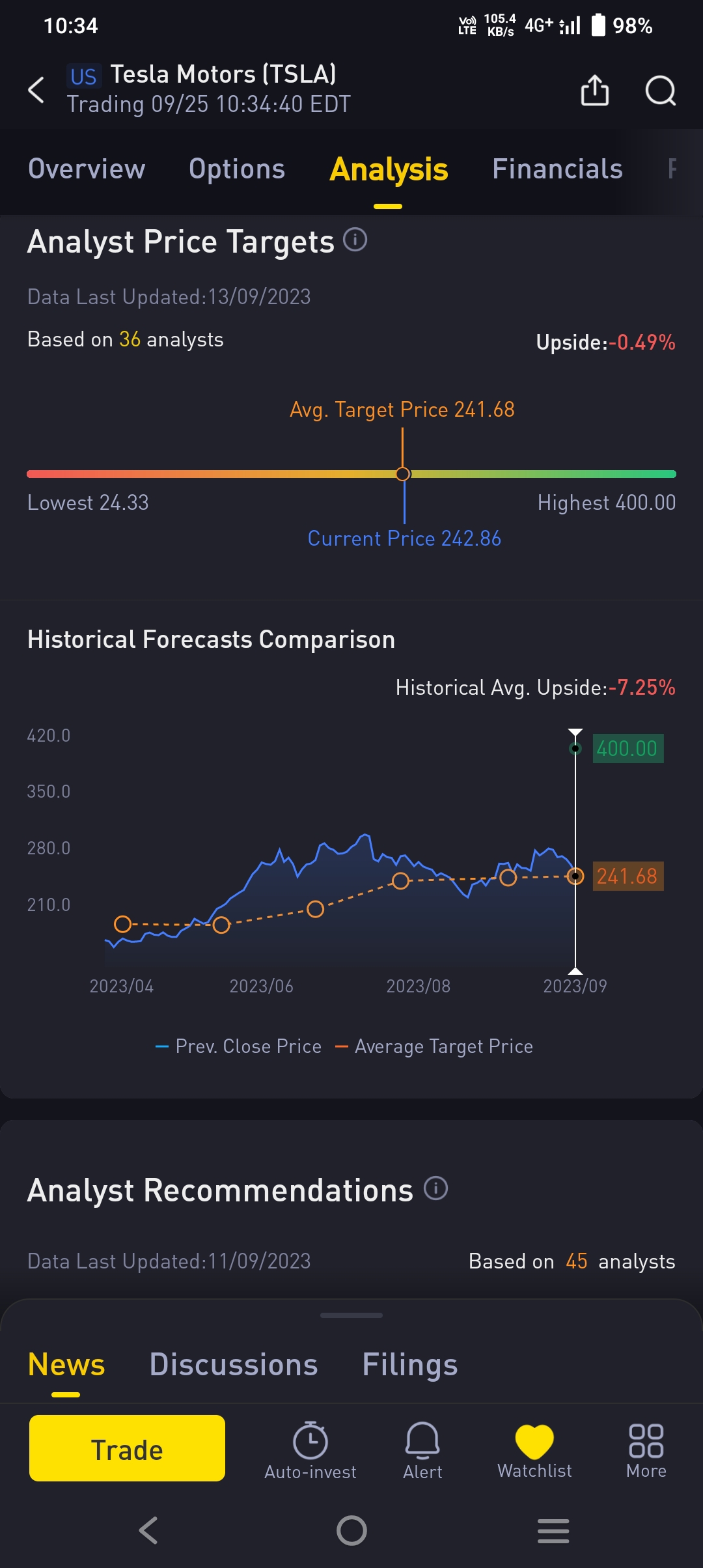 Tesla 24.33 vs 400 analyst price target[Speechless]