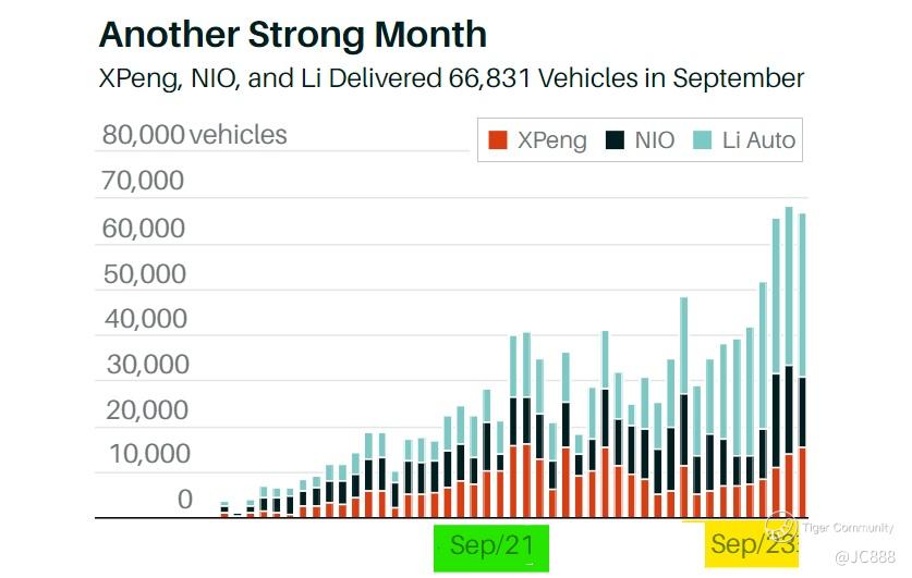 Looking the 3 Chinese EV makers ($XPeng Inc.(XPEV)$ , $Li Auto(LI)$ and NIO) Q3 2023 delivery.
