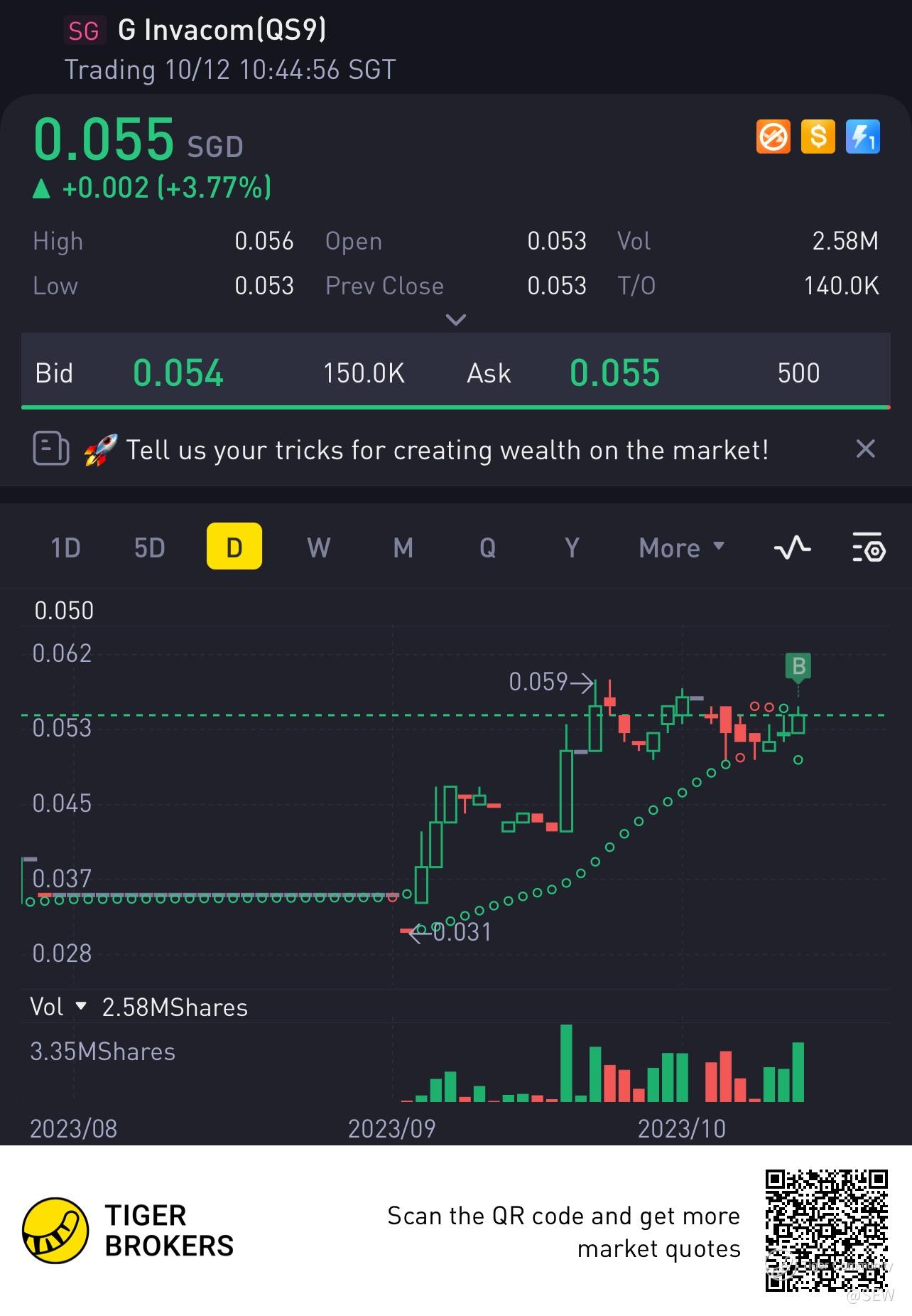 $G Invacom(QS9.SI)$ Rising on increased volume. Breakout 59 and test 64-65 soon!