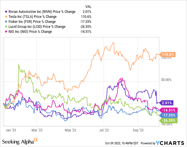 On a positive note, Rivian has outperformed Lucid, Fisker, and Nio YTD but lagged behind only Tesla in terms of stock price performance.