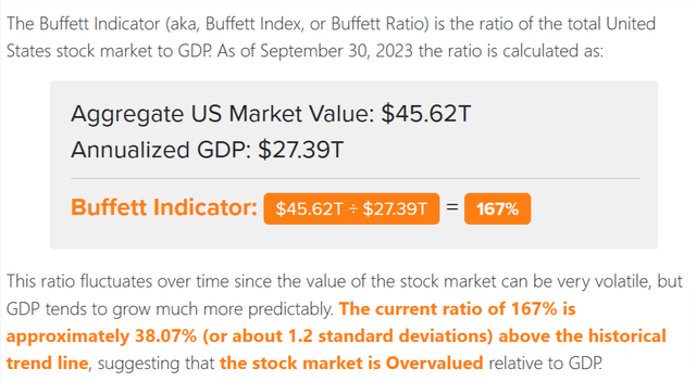 Buffett Indicator October 2023 (currentmarketvaluation.com)
