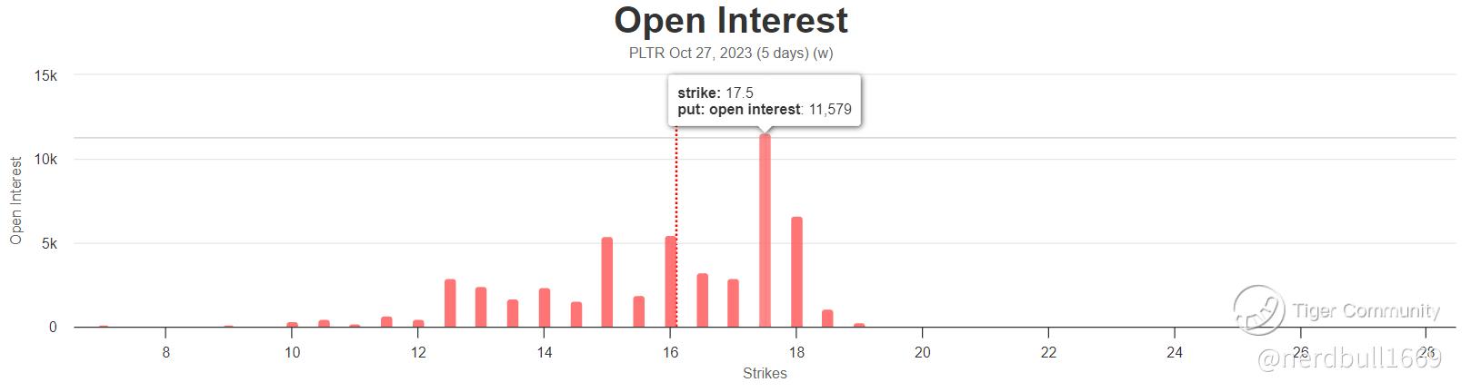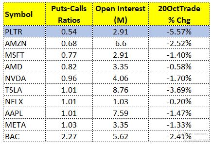 PLTR has a total open interest of 153,339 contracts and a put-call ratio of 0.54 for options expiring Oct 27, 2023 (4 days).