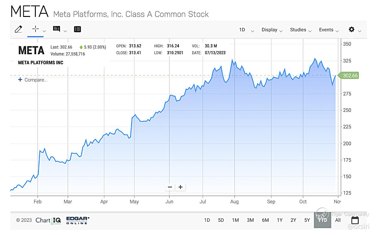 Meta's stock up 170% YTD, a strong indicator of financial prowess and growth potential