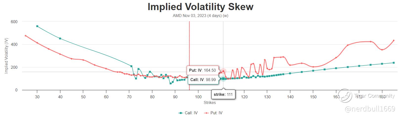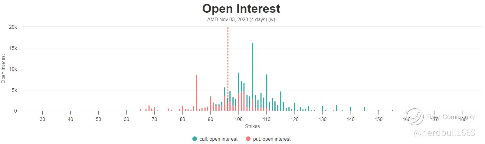 AMD has a total open interest of 152,978 contracts and a put-call ratio of 0.68 for options expiring Nov 03, 2023 (3 days).