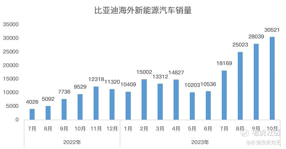 比亞迪10月交付301833輛,首次突破30萬輛大關,同比增長38.6%,其中海外銷量30521輛,亦創歷史新高: