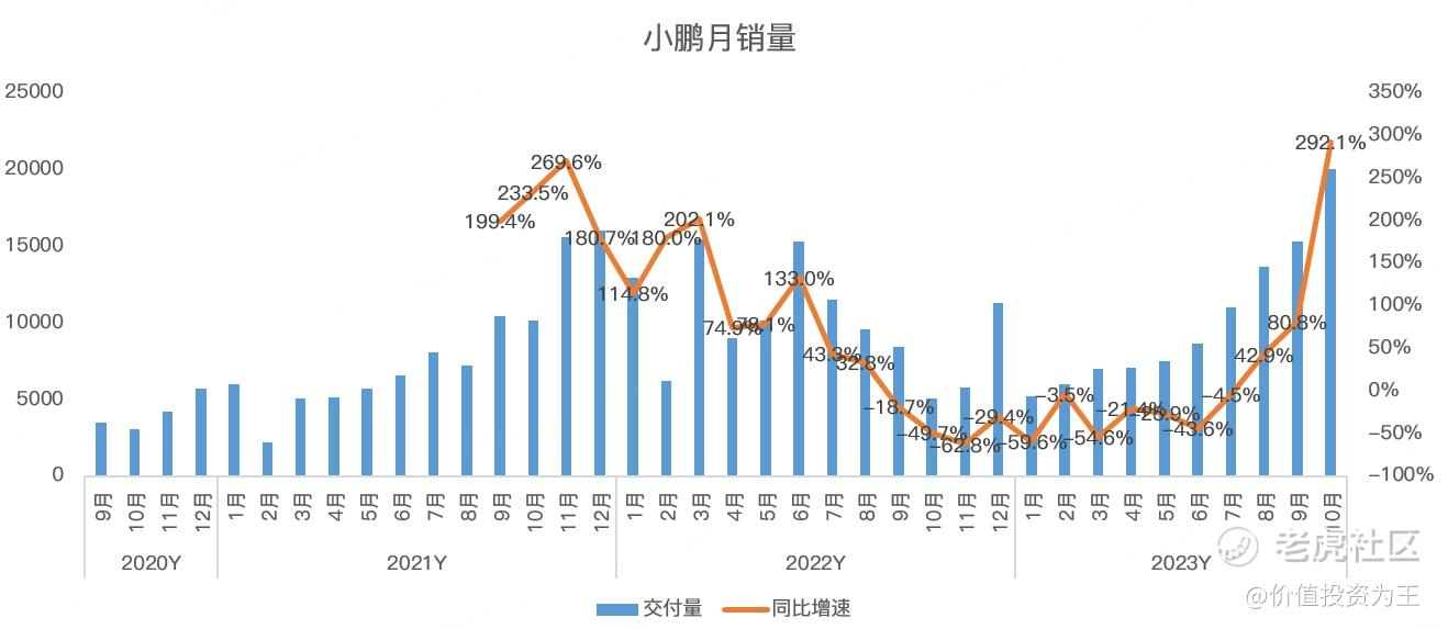 小鵬10月交付20002輛,首次突破2萬關口,同比增長292%,其中G6單月交付8741輛,成爲20-25萬價格帶最暢銷的純電動SUV。