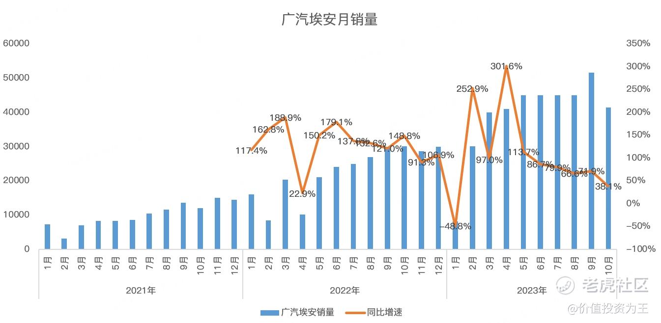 10月最令人大跌眼鏡的要數廣汽埃安了,在9月銷量突破5萬大關後,10月交付量竟然只有41503輛,創5個月來新低: