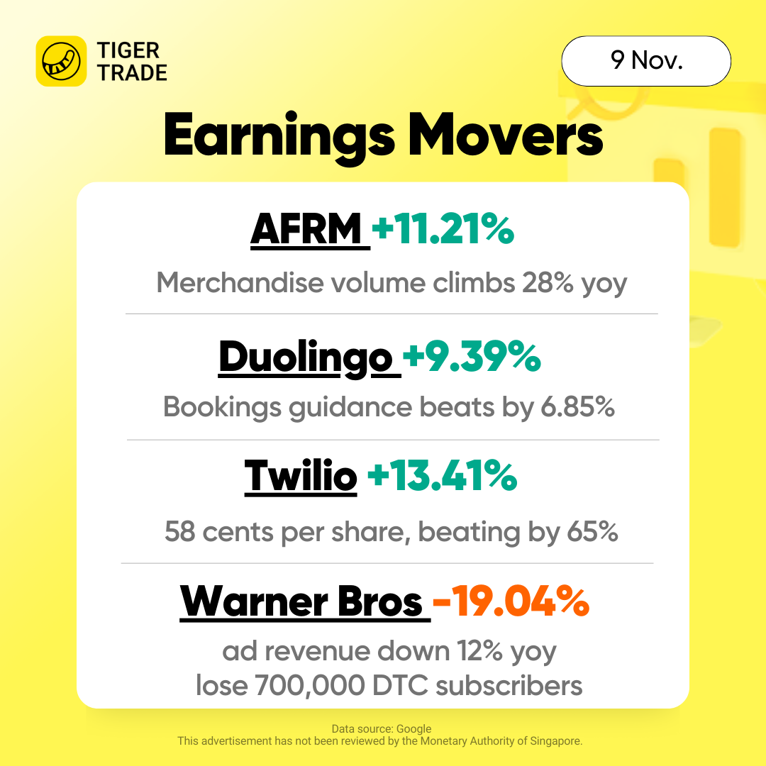 Earnings movers | AFRM GMV climbs 28% yoy; DUOL lifts booking guidance