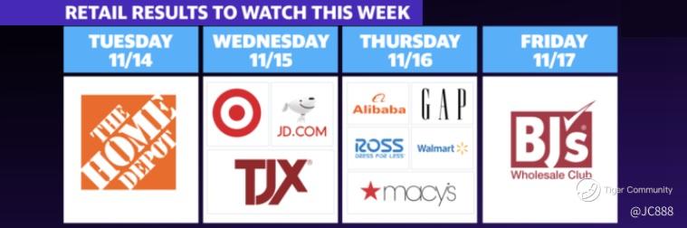 Third quarter earnings for the week beginning 13 Nov 2023 centres squarely on Retail stocks. (see above)