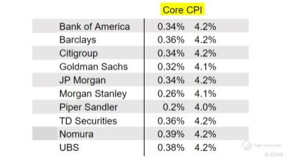 US Banks forecasts on US's October Core CPI