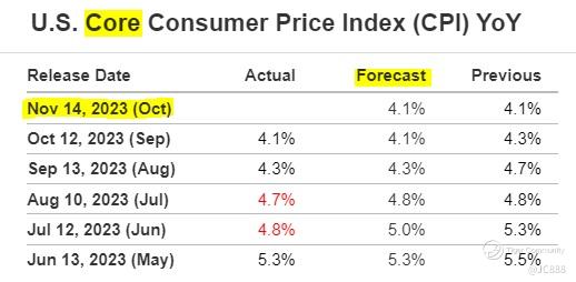 Wall Street is expecting Core CPI to remain status quo at 4.1%.