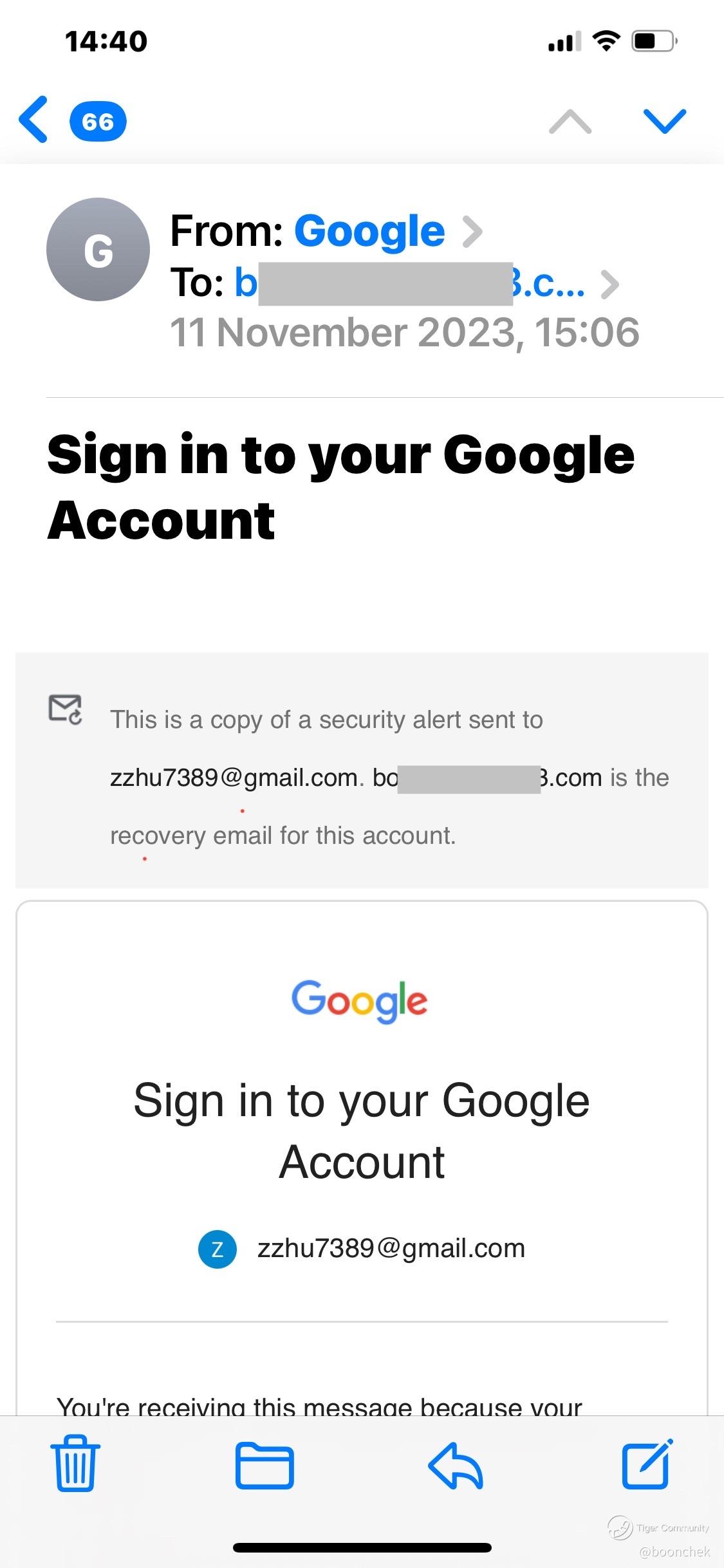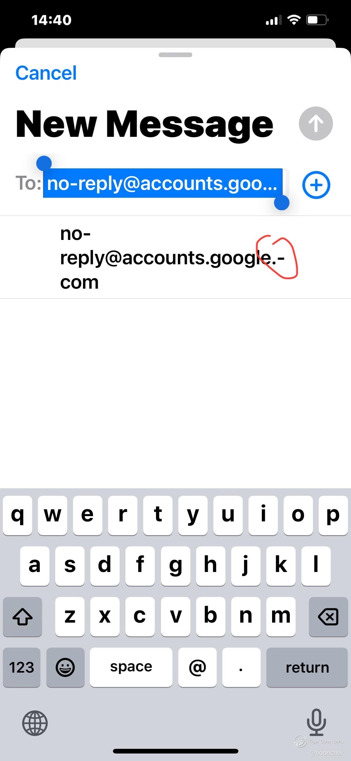 Alert 🚨 ‼️ 🔔 : New scam! Not truly a security email from “Google.com”, but it’s from “Google.-com” with another recovery email address you don’t recognise to make you panic and login to its fake Google website. Then you would give your passwords away! Brilliant 🤩 …