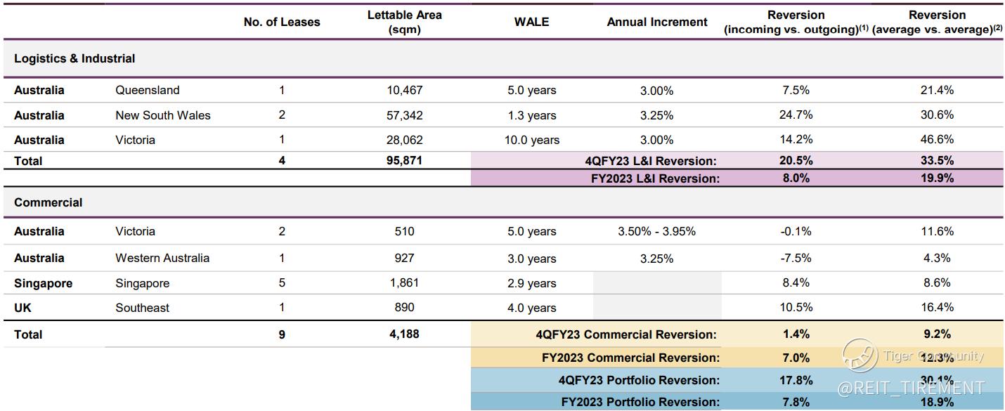 FLCT achieved strong portfolio rent reversion for the latest quarter, with 17.8% for incoming vs outgoing and 30.1% for average vs average.