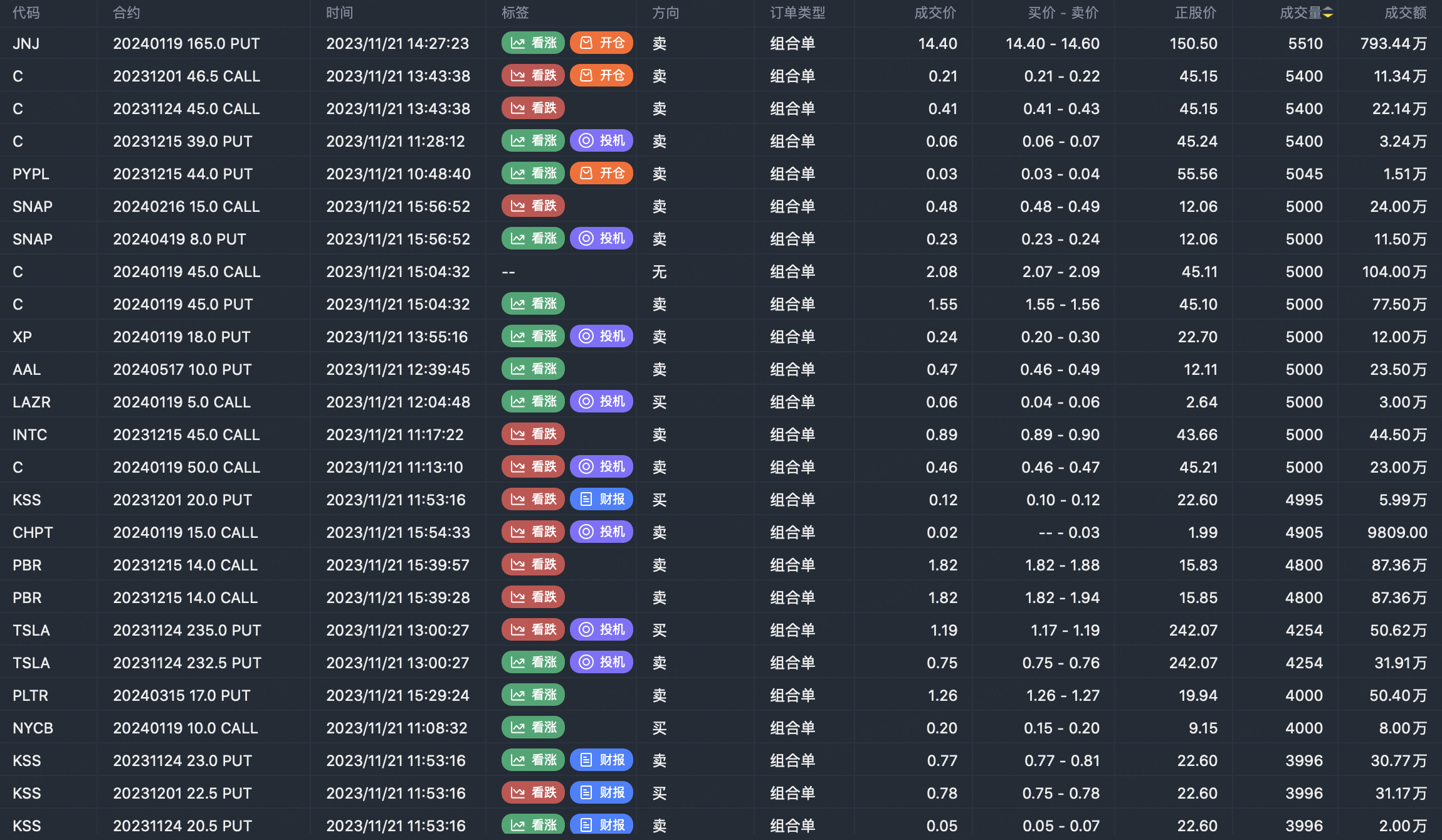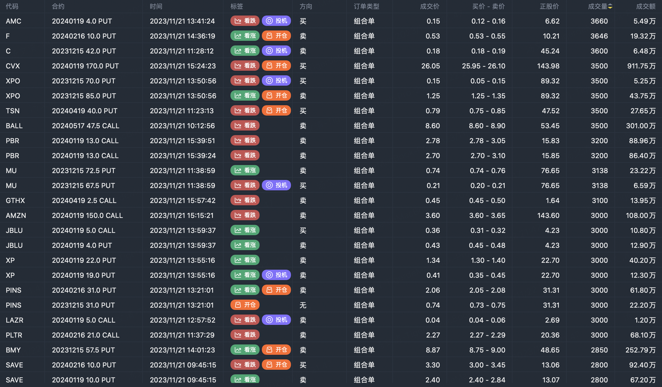 Note: This image data is from Tiger PC. This screening is a significant portfolio of options contracts in the market. Portfolio opening includes a variety of underlying trends, requiring traders to further master the basic knowledge of options for analysis and judgment.