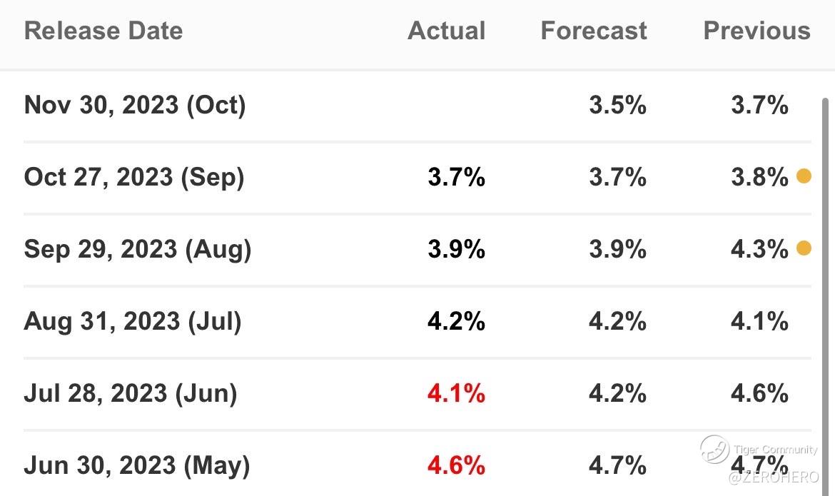 The headline PCE price index is expected to decrease from September’s year-on-year increase of 3.4% to 3% year-on-year in October.
