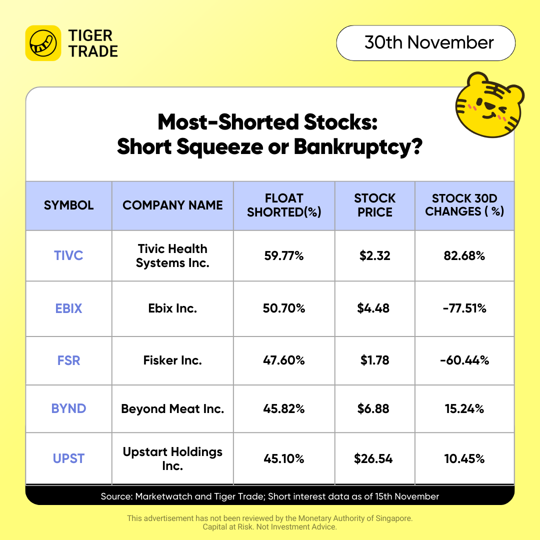 $Ebix(EBIX)$, software and e-commerce services company, also ranked as the top 5 most-shorted stocks in October. It rose over 50% after earnings on 15th Nov.