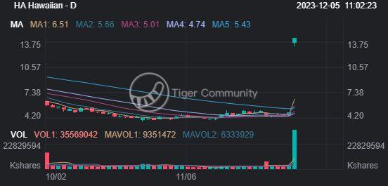 When $Alaska Air(ALK)$ announced its agreement to acquire $Hawaiian(HA)$ on Sunday, HA's stock price was only a little over $4 because it had been cut in half this year. The acquisition price was $18, so when the market opened on Monday, the stock price jumped to around $14. It closed at $14.25, with a premium of 26%.
