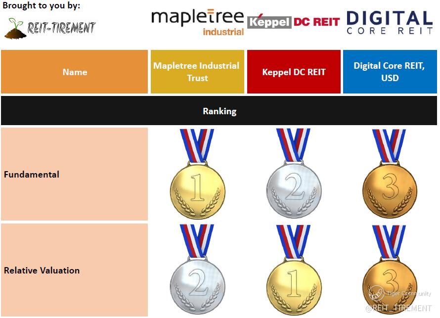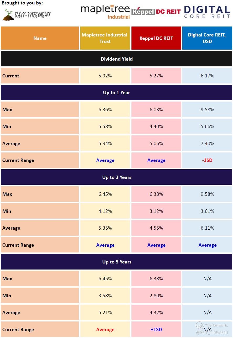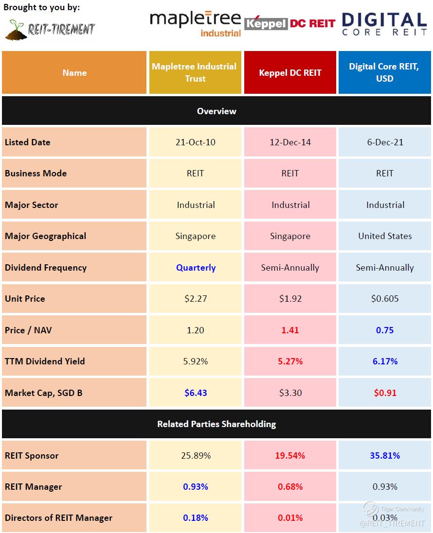 $DigiCore Reit USD(DCRU.SI)$ $Mapletree Ind Tr(ME8U.SI)$ $Keppel DC Reit(AJBU.SI)$