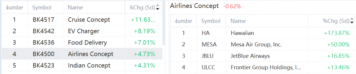 The stock market’s gains stalled this week, but the major indexes still closed in the green. The best-performing industries are cruise concept, ev charger, food delivery and airlines concept.