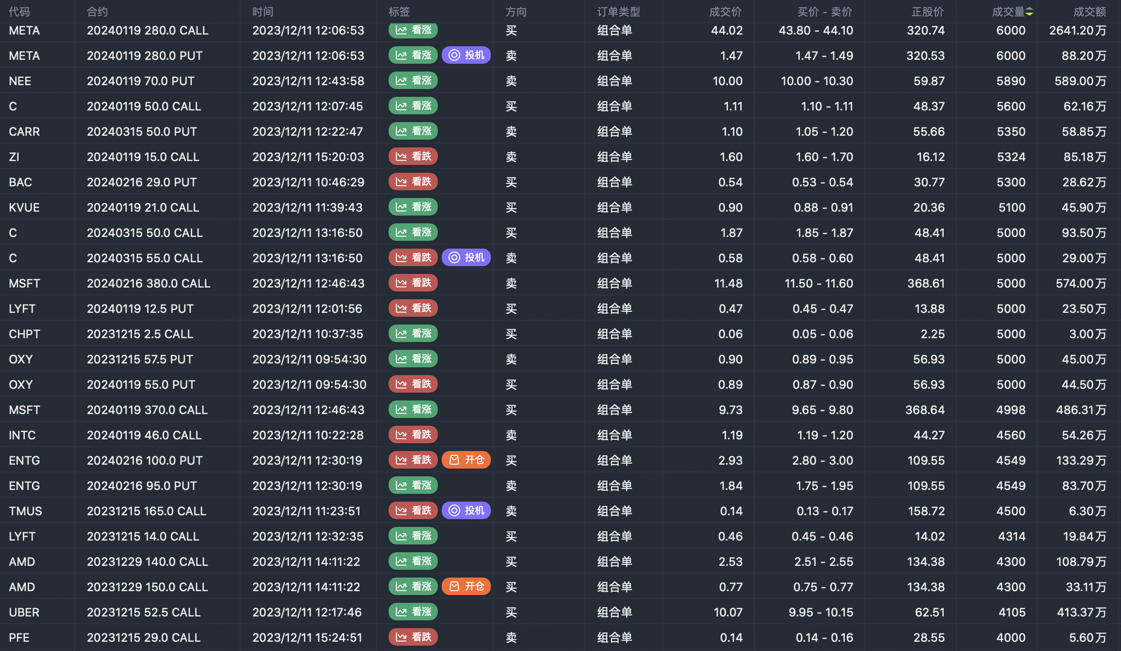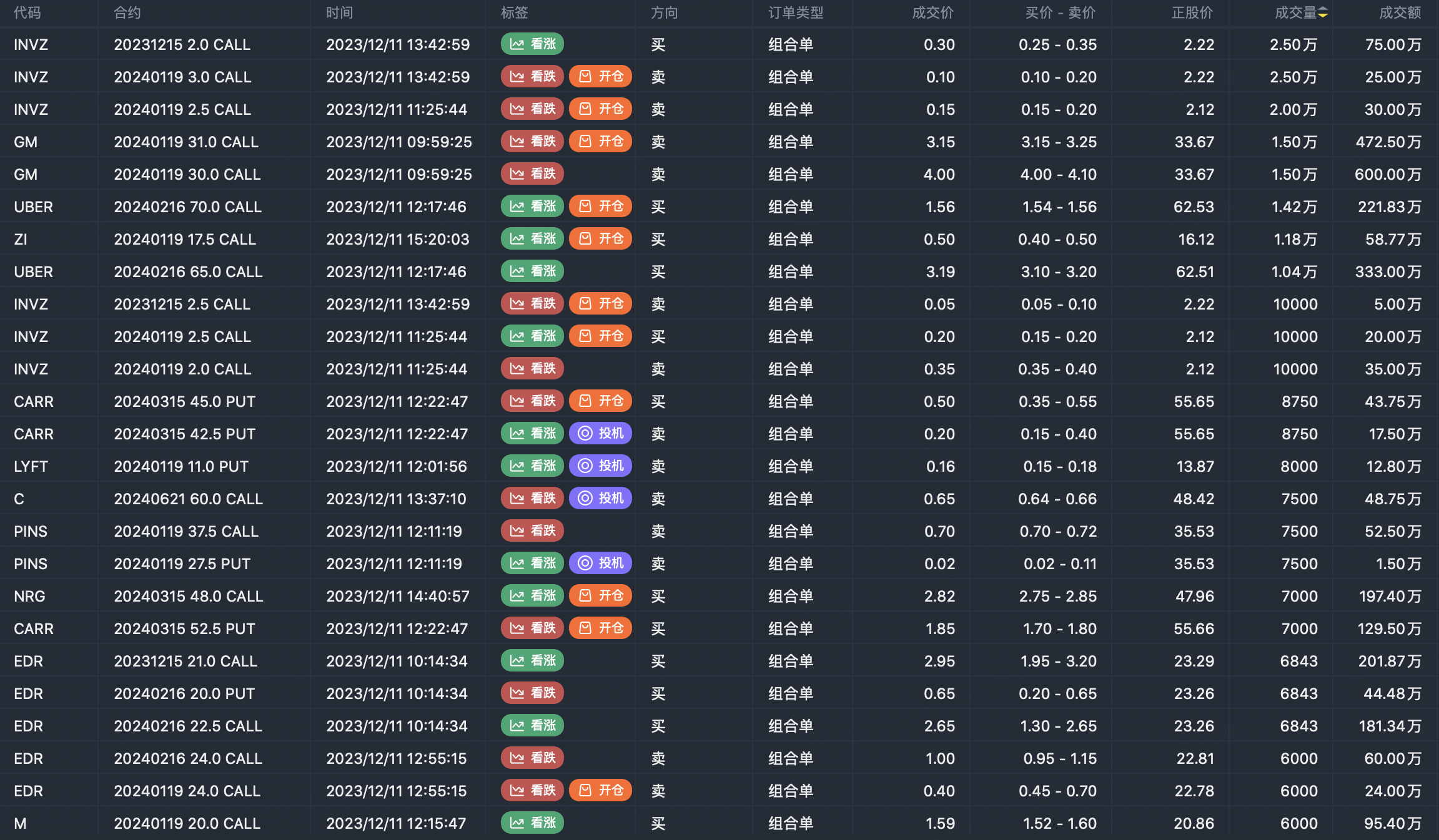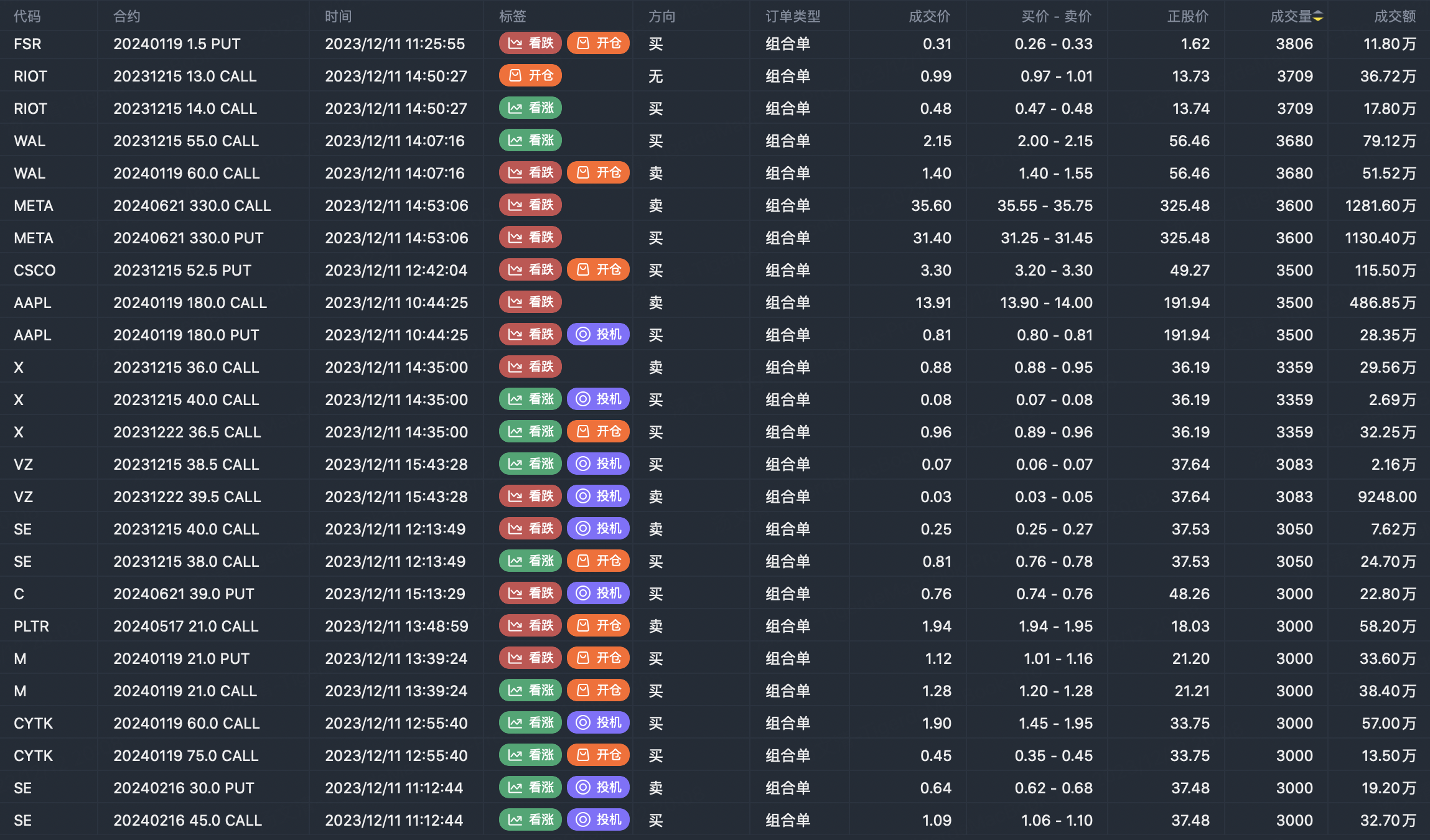 Note: This image data is from Tiger PC. This screening is a significant portfolio of options contracts in the market. Portfolio opening includes a variety of underlying trends, requiring traders to further master the basic knowledge of options for analysis and judgment.