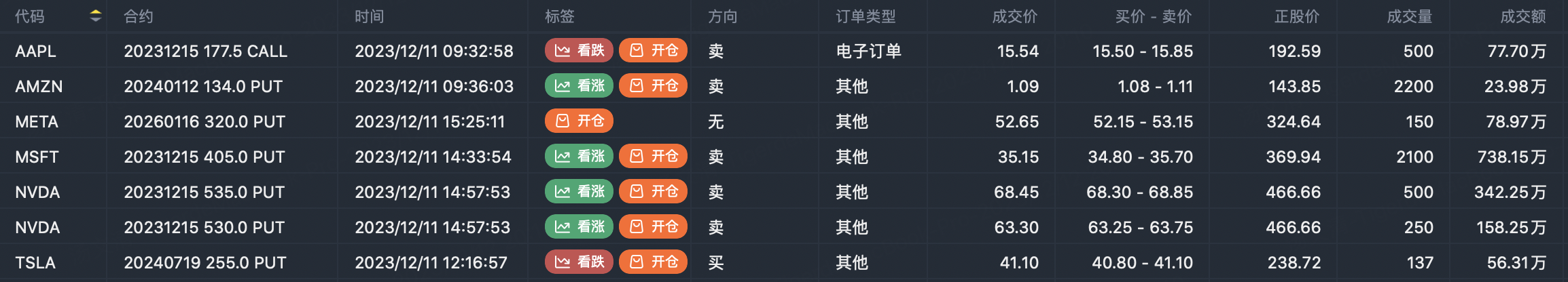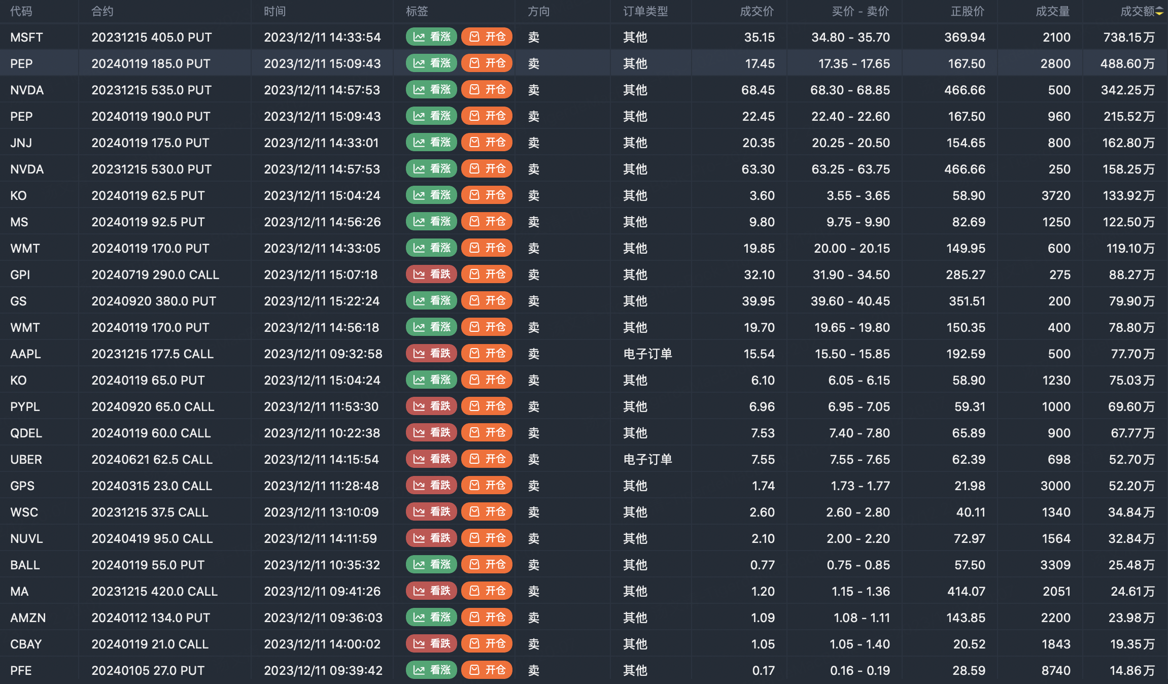 Note: This image data is from Tiger PC. This screen is a significant sell open position for an option contract in the market. A sell of a call option means that the trader believes that the underlying trend has peaked, and a sell of a put option means that the trader believes that the underlying trend has bottomed. These contract openings typically indicate significant activity in the underlying stock, including whether the trader is willing to accumulate a long or short option position.