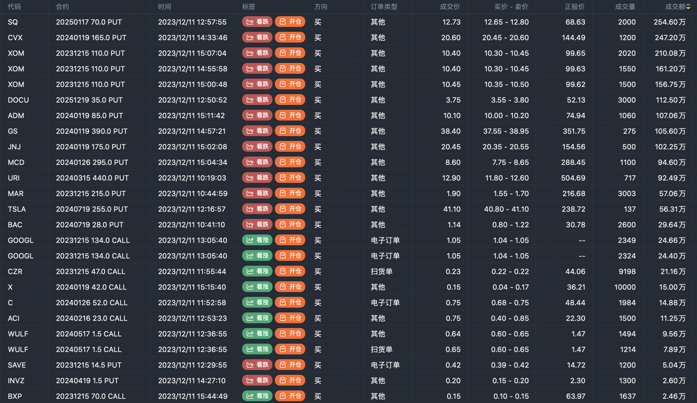Note: This image data is from Tiger PC. This screening is a significant buy open position for options contracts in the market. The purchase of a call option means that the trader believes that the underlying has upward momentum, and the purchase of a put option means that the trader believes that the underlying has downward momentum. These contract openings typically indicate significant activity in the underlying stock, including whether the trader is willing to accumulate a long or short option position.