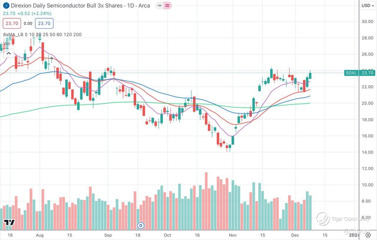 $Semiconductor Bull 3X Shares(SOXL)$ is up 10% today and a 20% jump in the past 5 days. SOXL is up a massive 178% in the past 5 days. However it is not advisable to hold SOXL on a long term basis as leveraged ETFs decay due to the compounding effects of daily returns, volatility of the market and the cost of leverage. This means that losses can be magnified over time. SOXL also has a high expense ratio of 0.94%.