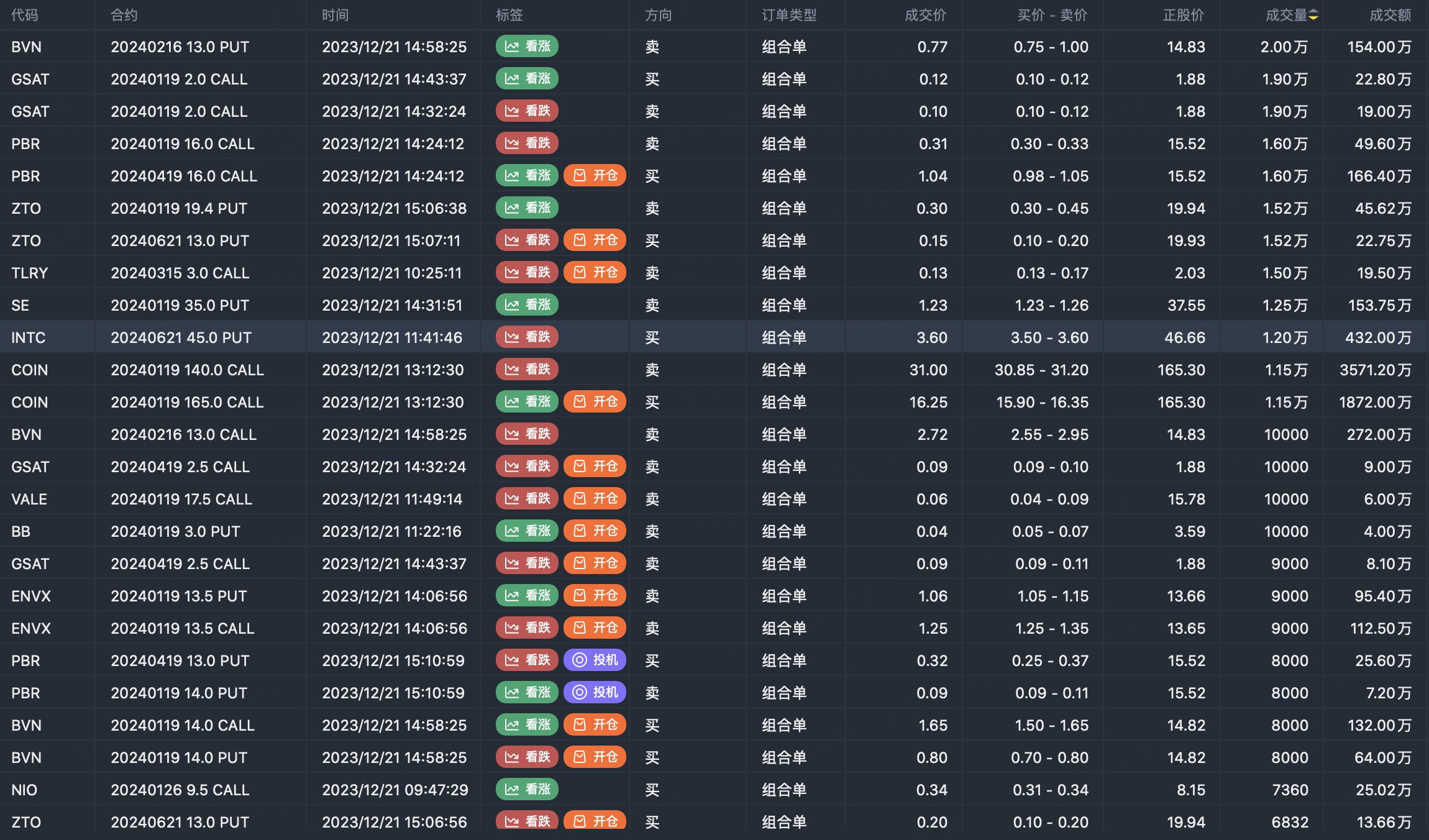 Note: This image data is from Tiger PC. This screening is a significant portfolio of options contracts in the market. Portfolio opening includes a variety of underlying trends, requiring traders to further master the basic knowledge of options for analysis and judgment.