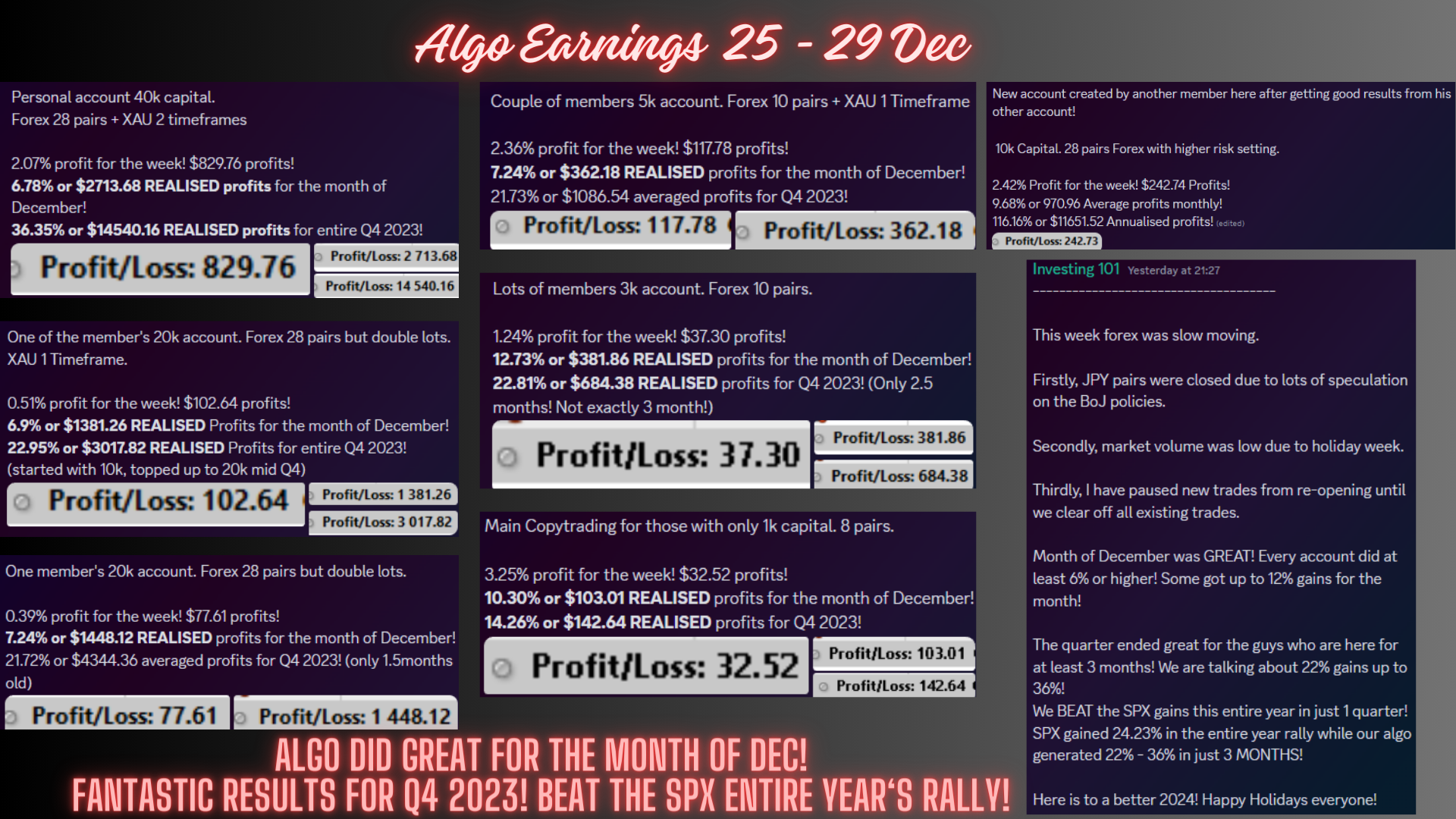 SPX gained 24.23% in the entire year rally while our algo generated 22% - 36% in just 3 MONTHS!