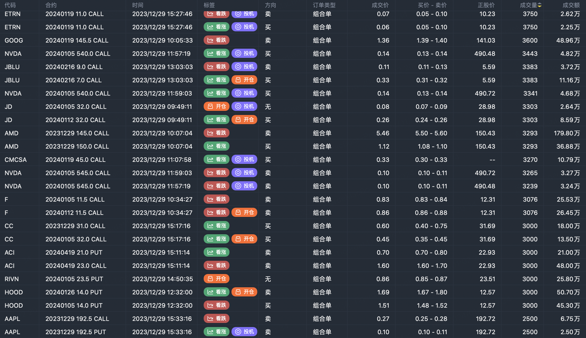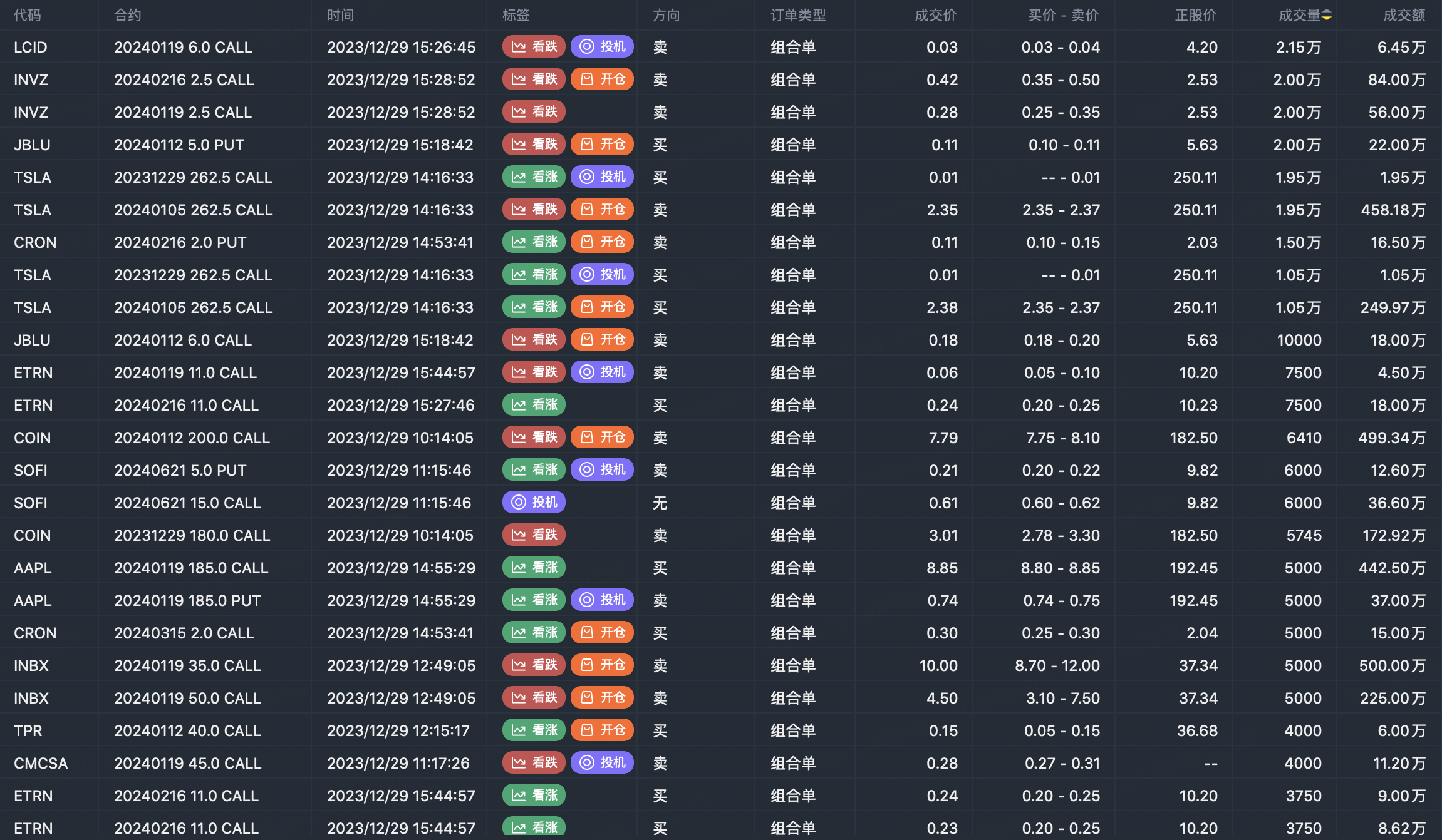 Note: This image data is from Tiger PC. This screening is a significant portfolio of options contracts in the market. Portfolio opening includes a variety of underlying trends, requiring traders to further master the basic knowledge of options for analysis and judgment.